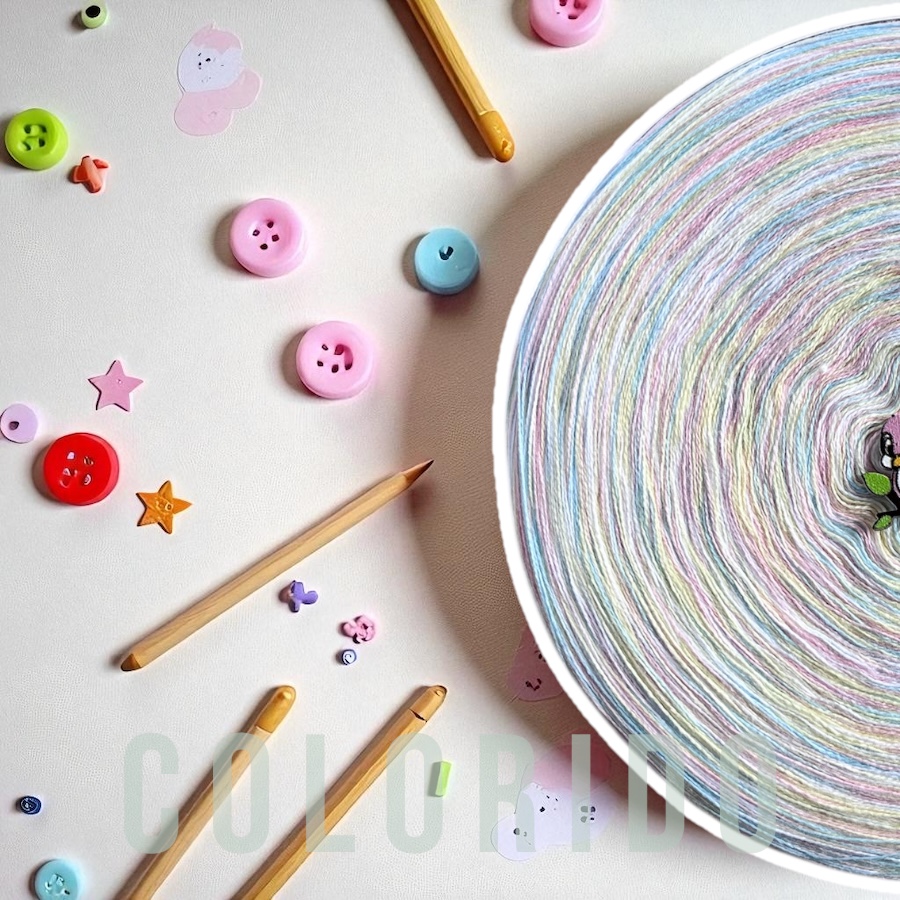Motki COLORIDO mają płynne przejścia kolorów – zmiany następują nitka po nitce, łączone są małymi supełkami.